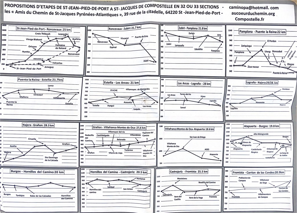 看第二張圖左上角,由St. Jean-Pied-de-Port 到Roncevaux( Roncesvalles ),是一段不斷上斜的路段。萬事起頭難呀。但還是要GO!行きましょう!